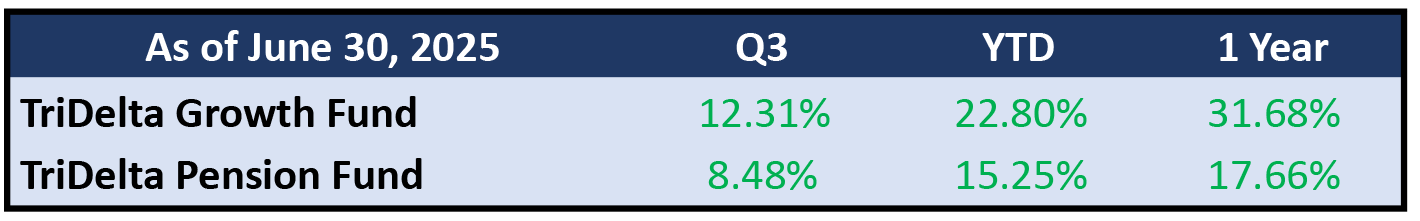 To the end of September, the TriDelta Growth and Pension strategies have returned 22.80% and 15.25%, respectively.